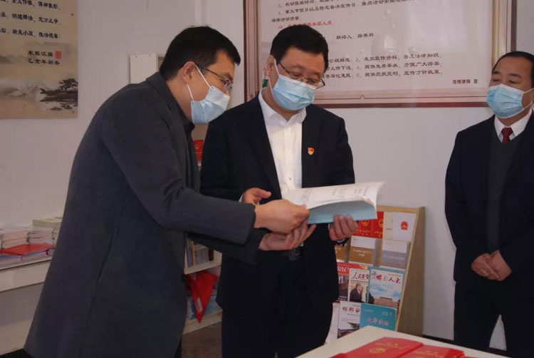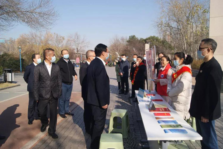 宪法日当天,邯郸市人大常委会一级调研员张剑军主任在邯郸市人大常委会法工委副主任郑志磊的陪同下,到龙湖公园内的“法律小屋”走访视察了浩博所“宪法日”活动现场。