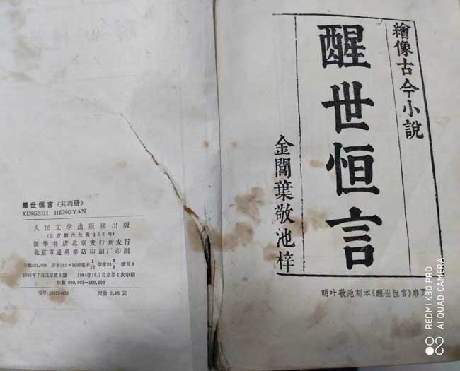 这套“三言”,版本不同,特别是这本《醒世恒言》上册,是1956年7月第一版,1984年10月第一次印刷,这两个时间节点,赶上了好时候,未受反右和WG影响,其内容原滋原味。