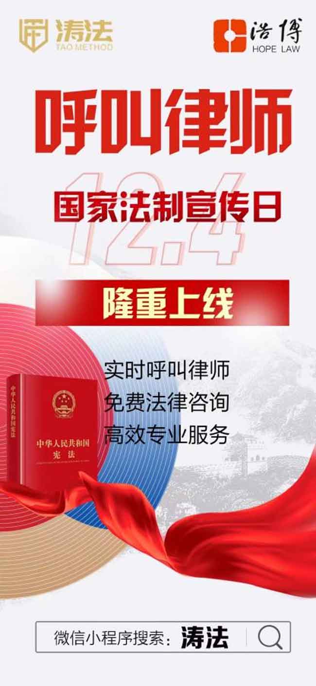 心怀国之大者,致敬国之大法。今年的国家宪法日,浩博律师事务所隆重推出献礼项目--“涛法呼叫律师”(公益法律服务小程序)。将于12月4日在海南、西藏、河北率先精彩亮相。
