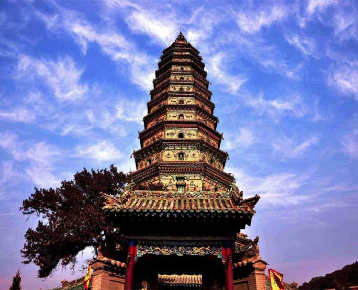 临汾有一盖世宝塔,曾出现在《西游记》第18集“扫塔辨奇冤”中,祭赛国那座高高耸立的“金光塔”,就是在此取景。这座世界最高的多彩琉璃塔,建成于明代嘉靖六年(公元1527年),天启二年(公元1622年)塔身加装琉璃,至今已四百余年。彩云易散,琉璃易碎,世间好物埋没于时间洪流中化作尘埃数不胜数,而飞虹塔却能历经百年风雨,依旧色彩绚丽如雨后彩虹。