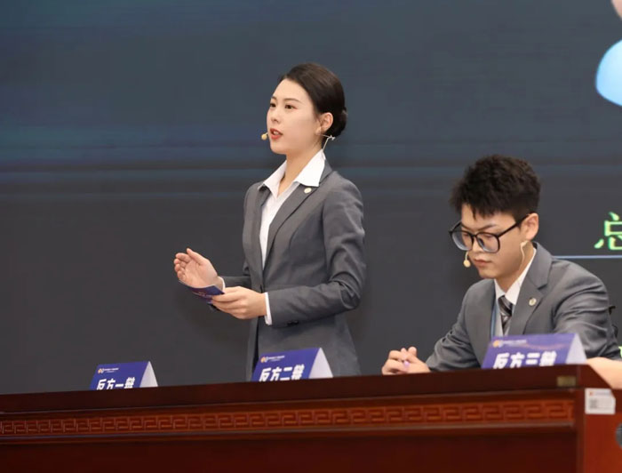 杨录园乃浩博新秀,深得浩博辩论技能文化真传。她从初赛陪练到决赛主力,小试锋芒,异军突起,论剑省城,舌战检方,当场获胜,且顺手摘下“十佳辩手”桂冠,助力邯郸律师队成功实现了从预赛第七名到决赛亚军的完美逆袭!